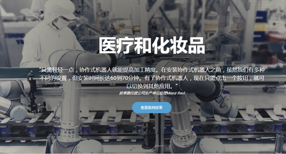 隨著醫(yī)療和化妝品產品生命周期的縮短,協(xié)作自動化為制造提供靈活性。優(yōu)傲機器人的機械臂可用于盡可能地提高產量和確保質量的一致性,還可以迅速重新部署到新的生產線。在整個行業(yè)內,協(xié)作式機器人可用于管理機床和傳送帶;精確裝配設備和產品;以及利用罩板包裝、紙箱和托盤對產品進行裝箱和包裝。